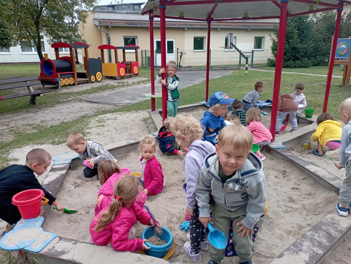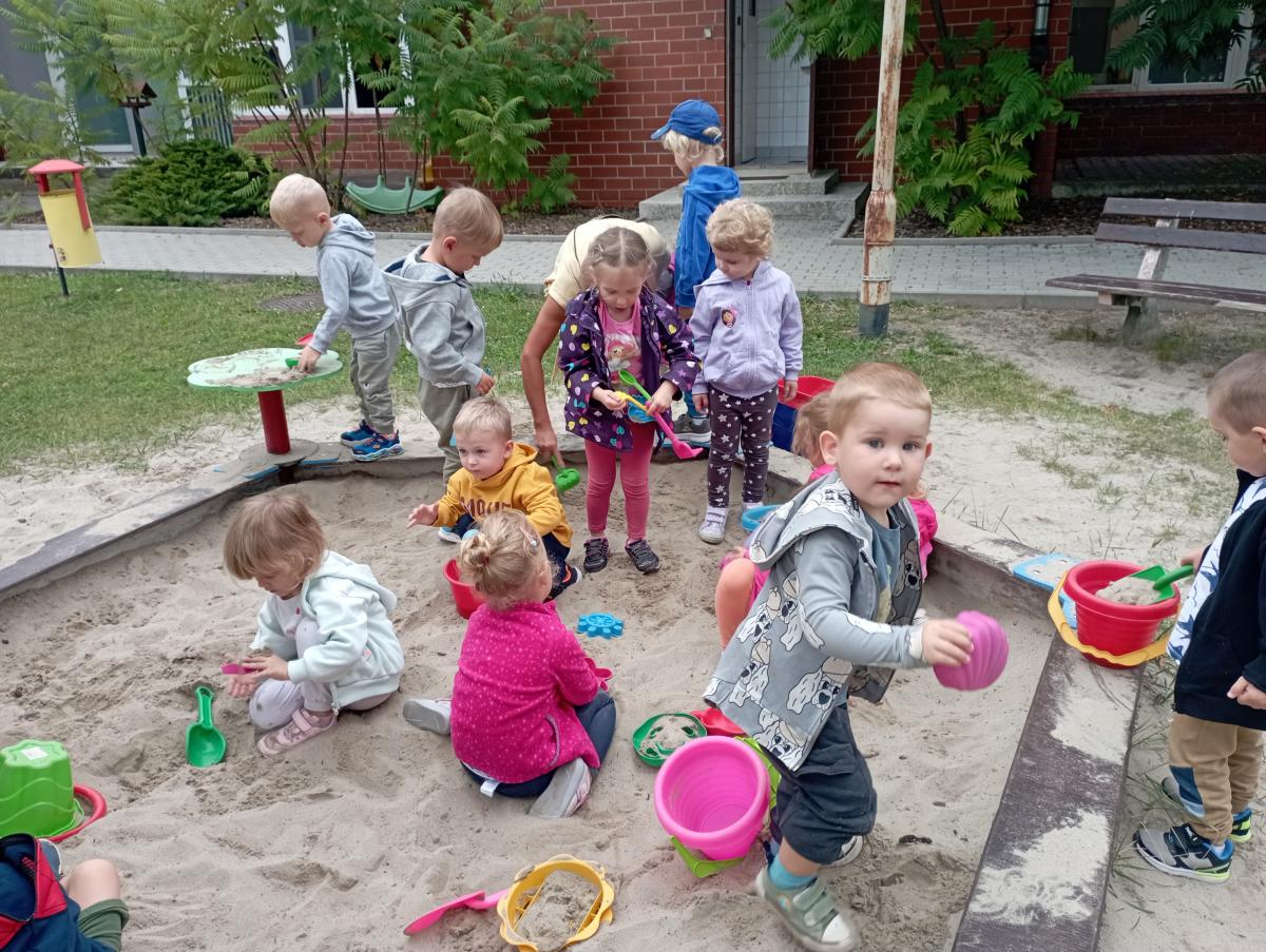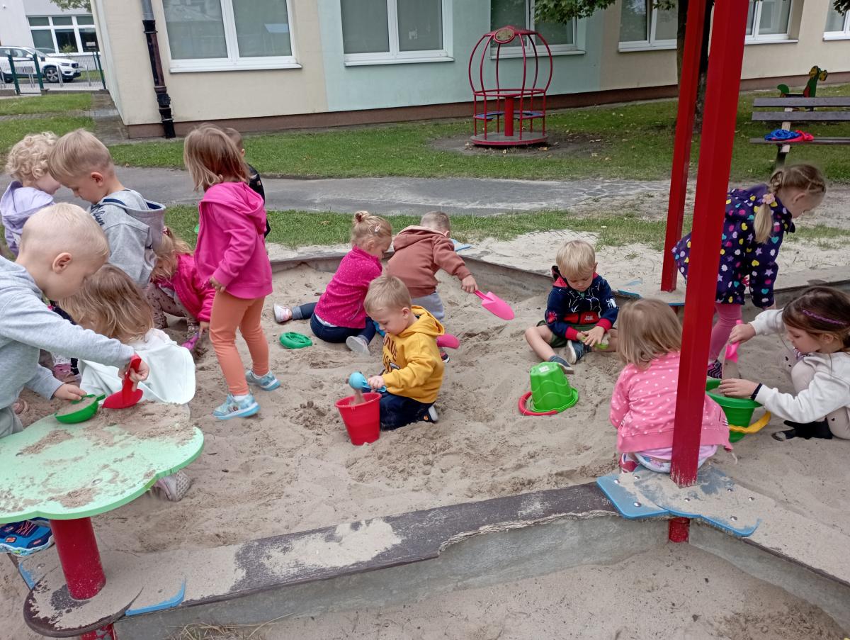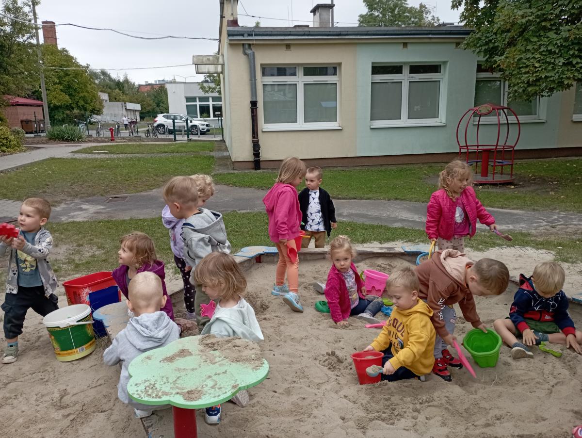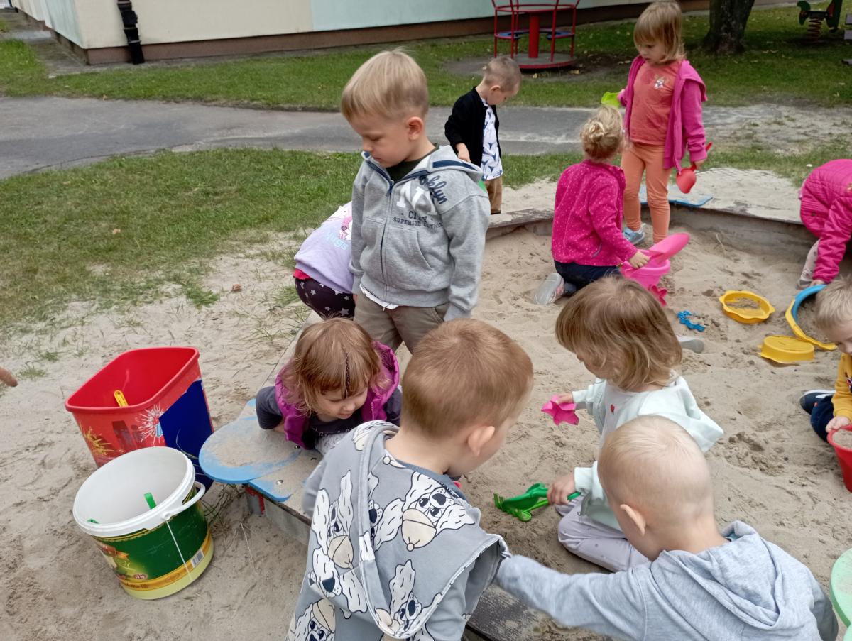 Biedronki podczas pierwszego wyjścia na plac zabaw zostały zapoznane ze sprzętem terenowym, który się na nim znajduje. Przed rozpoczęciem zabawy w piaskownicy zapoznały się z zasadami odpowiedniego korzystania z niej oraz bezpiecznej, wspólnej zabawy. W trakcie lepienia babek z piasku czas maluszkom upłynął miło i przyjemnie.