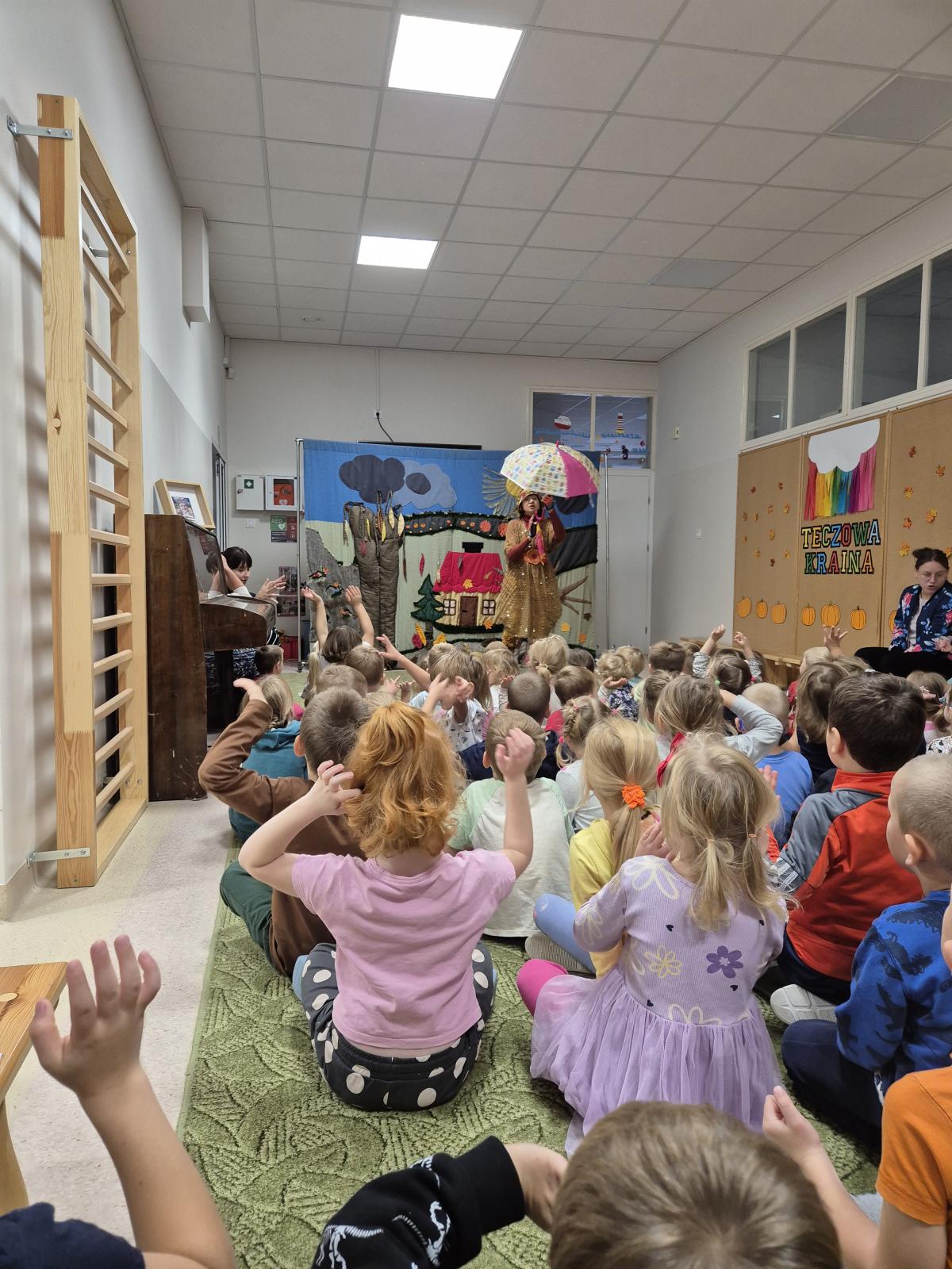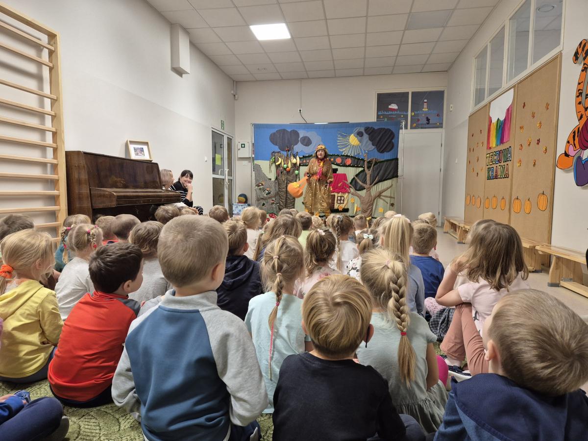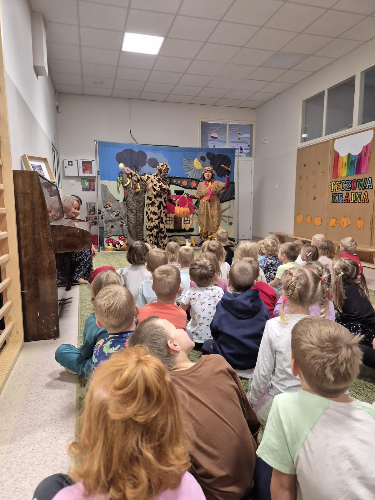 Odwiedził nas Teatrzyk Kop z przedstawieniem pt. "Pani Jesień dary niesie". Zabawny Świstak chciał podkraść warzywa i owoce Złocistej Jesieni, ale na szczęście wszystko skończyło się dobrze - razem zrobili potwory, tzn. przetwory na zimę;-)