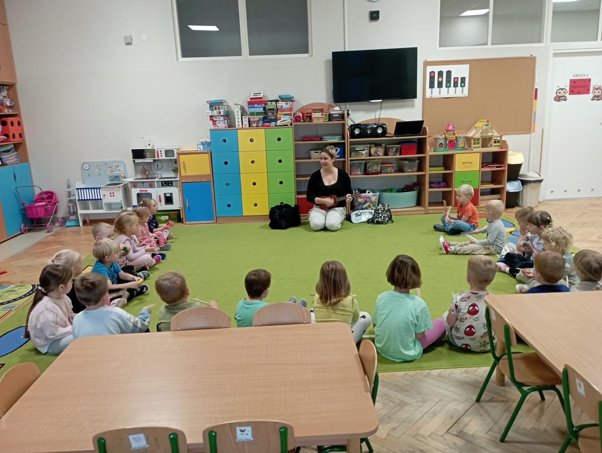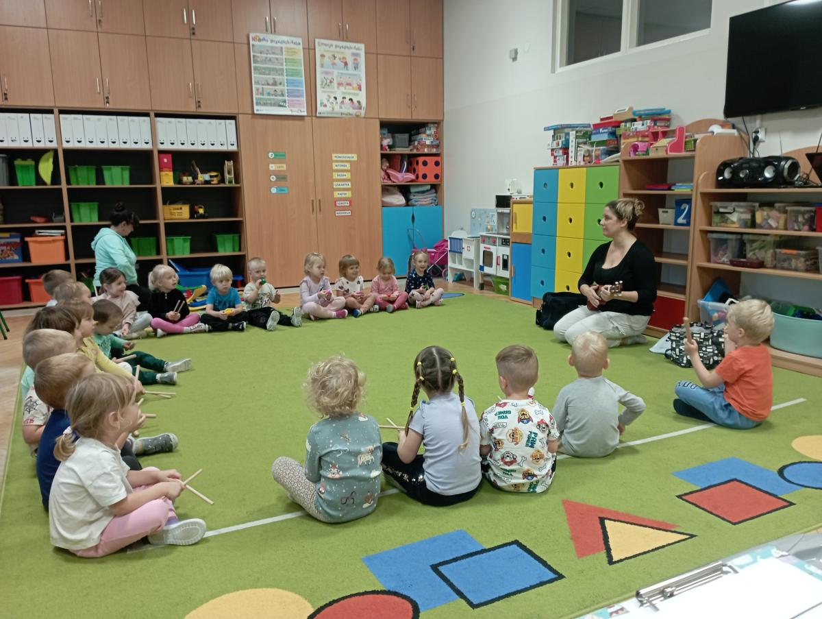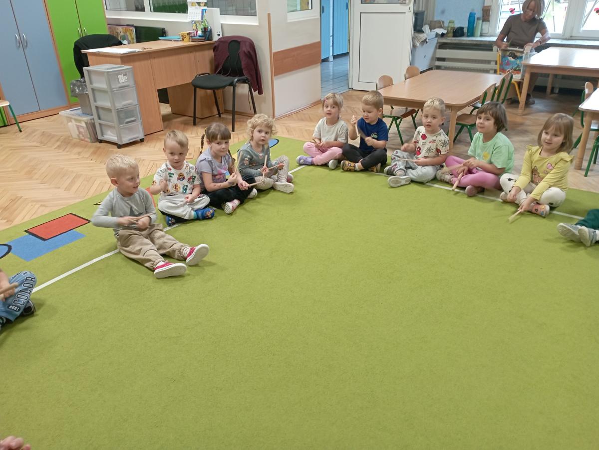 Grupa biedronek miała zajęcia z rytmiką, podczas której świetnie się bawiły przy wykorzystaniu różnych instrumentów muzycznych.