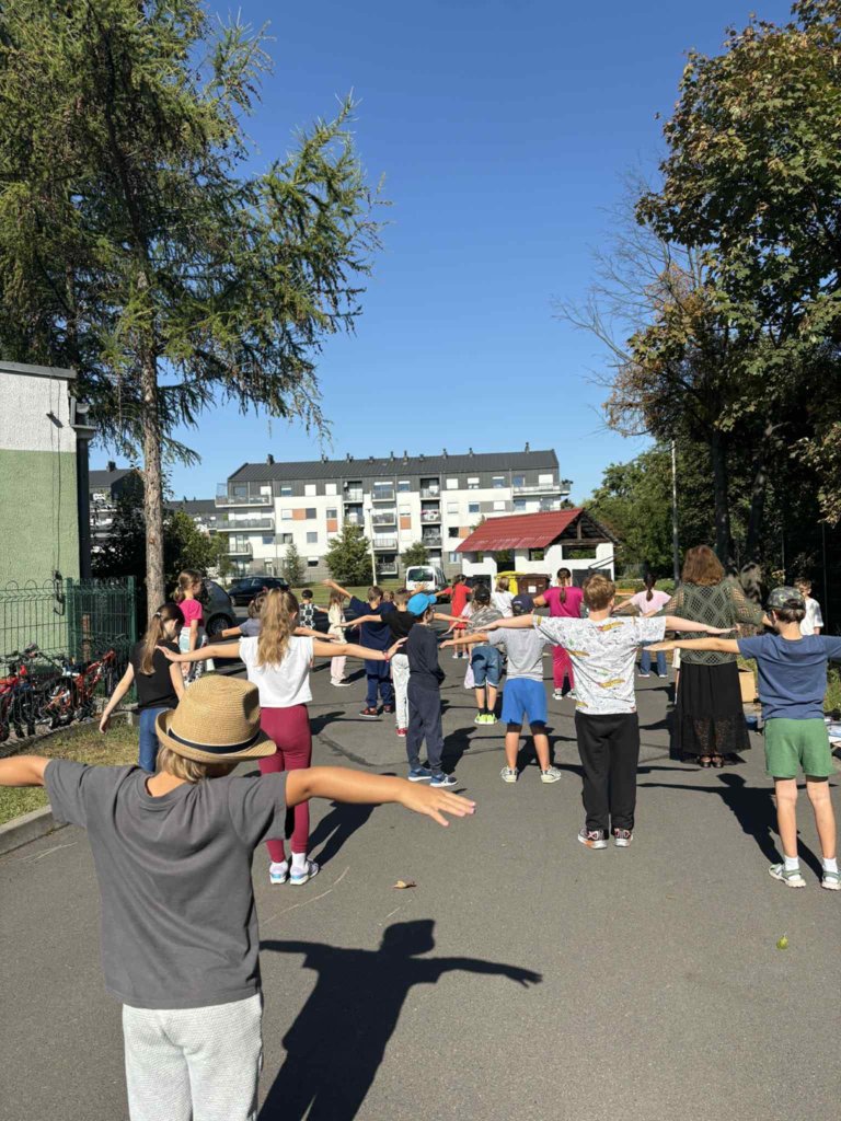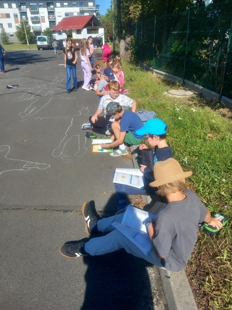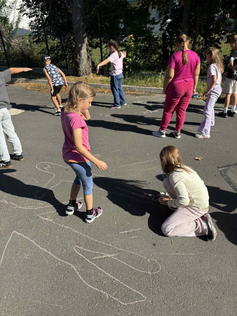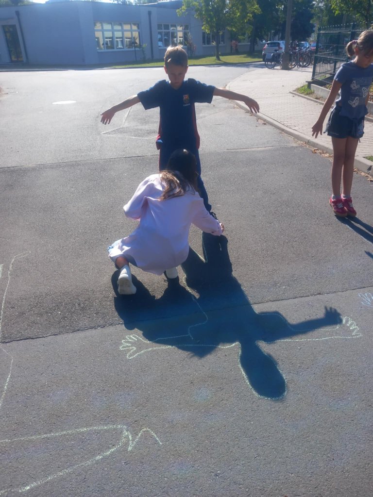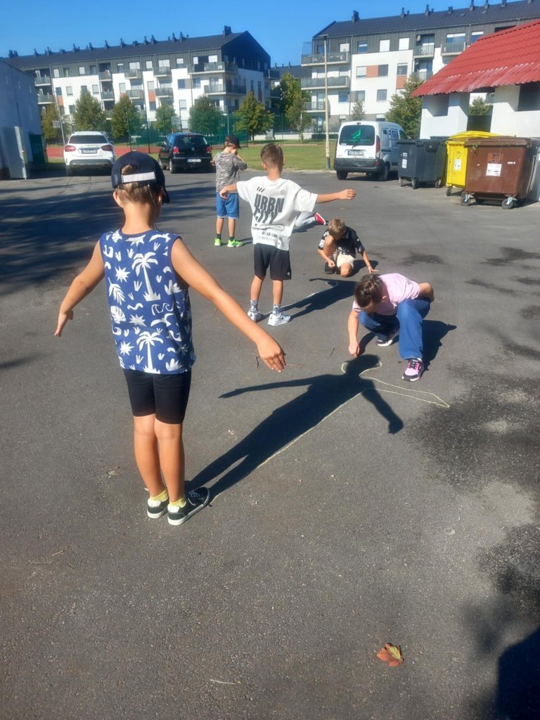 3.09.2025 r powitał nas piękną pogodą, którą 3b postanowiła wykorzystać na lekcję przyrody w terenie. Uczyliśmy się określać kierunki świata na podstawie swojego cienia. To była bardzo pouczająca lekcja.