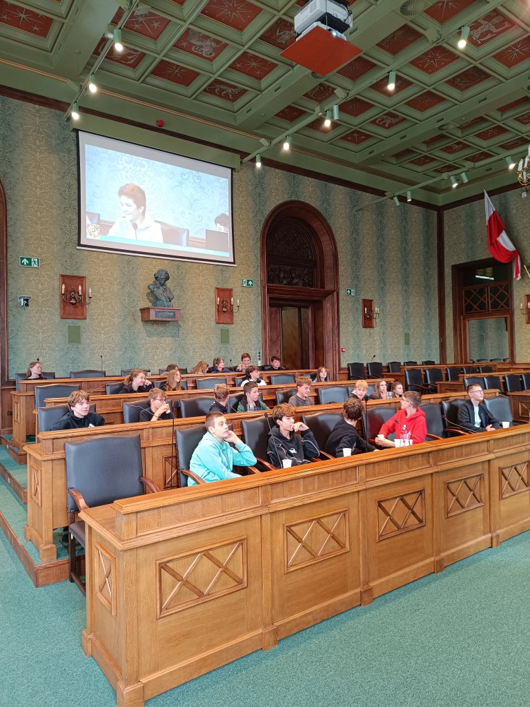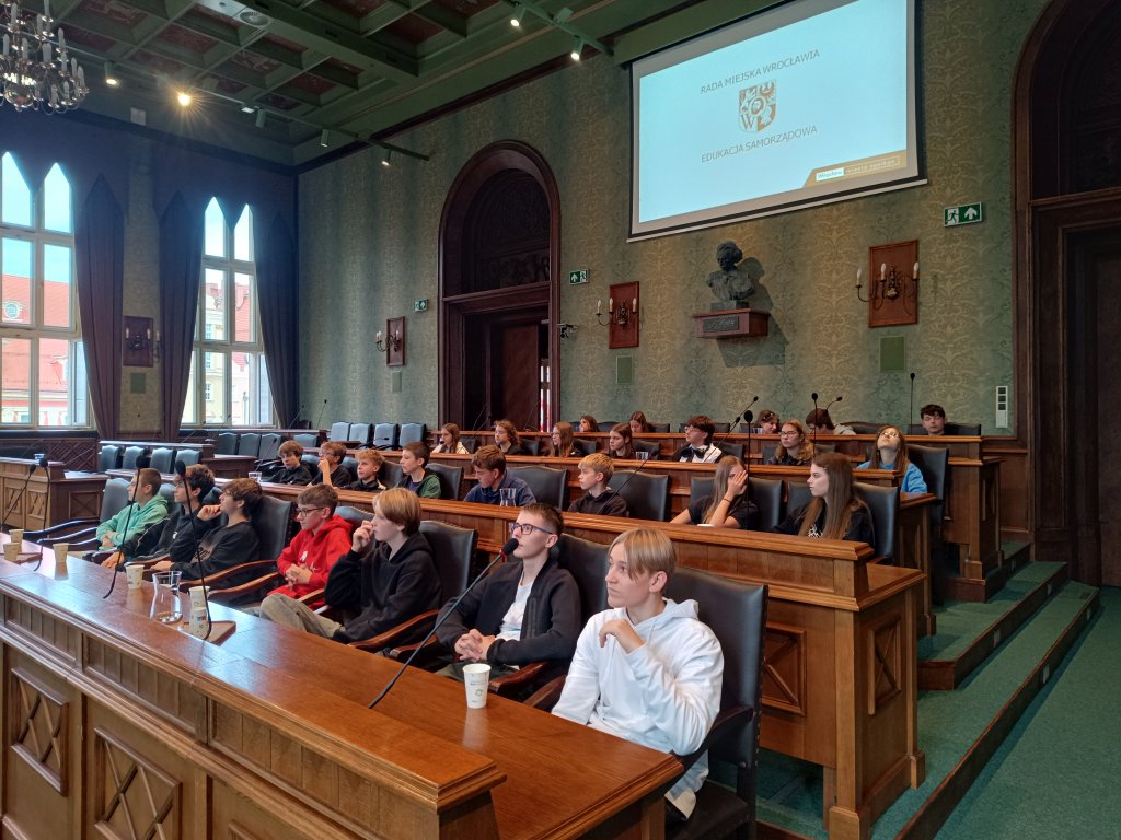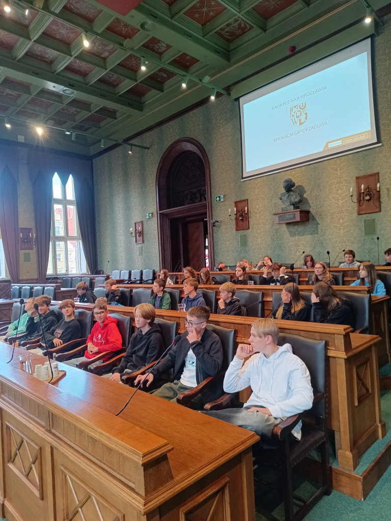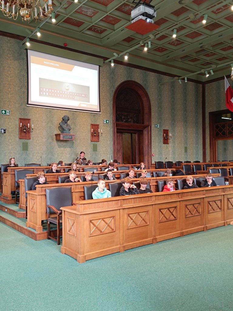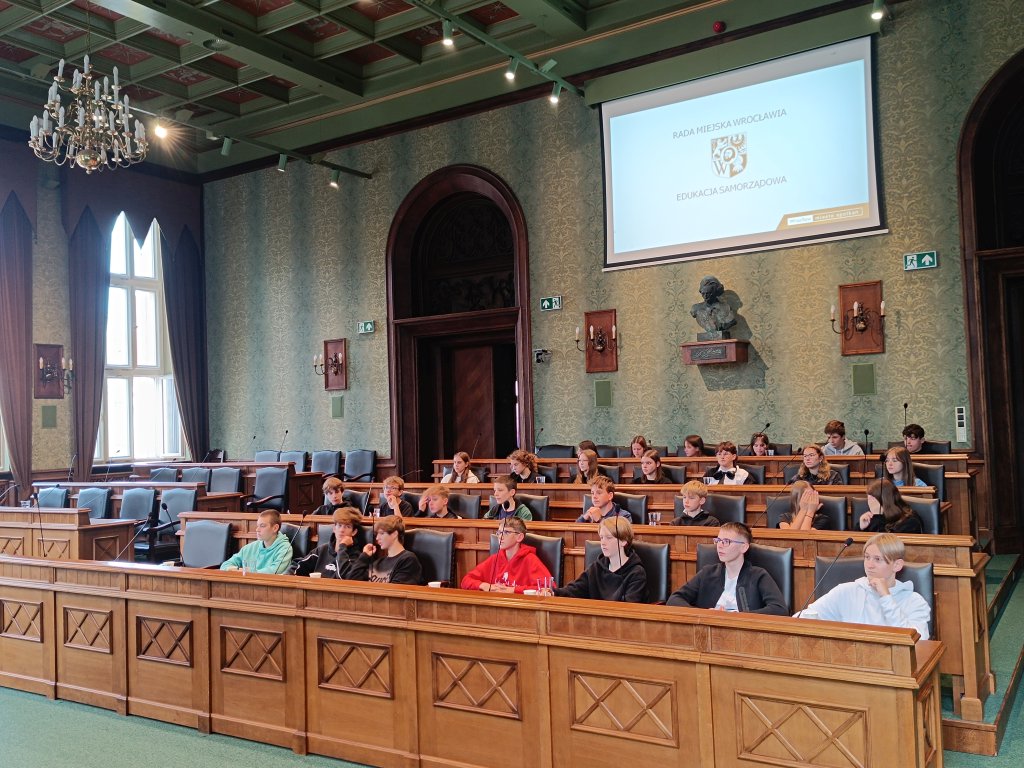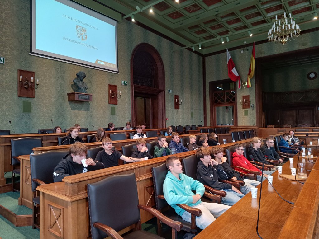 25.09.2025 - Klasy ósme (8A i 8D) w siedzibie Rady Miasta Wrocławia, ważna lekcja samorządności i praw obywatelskich