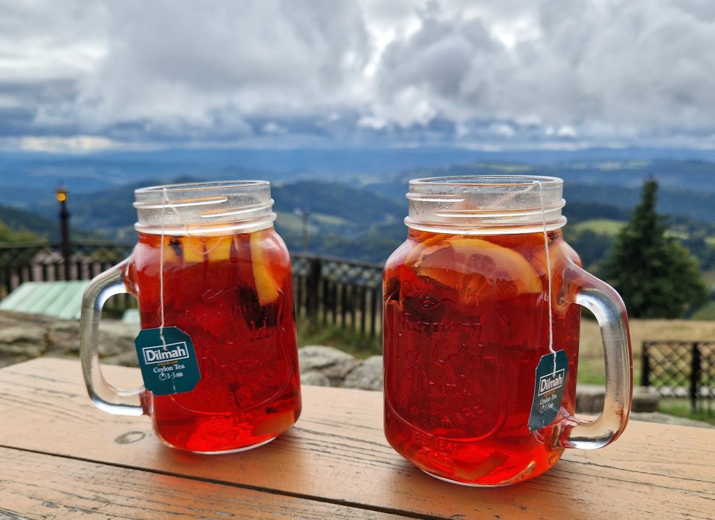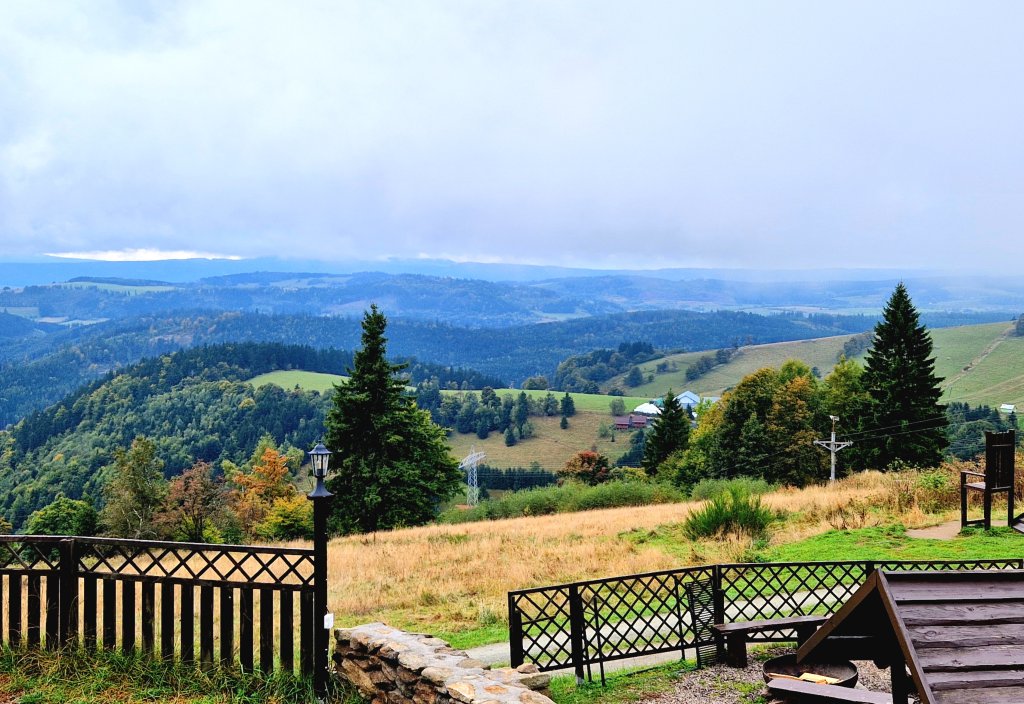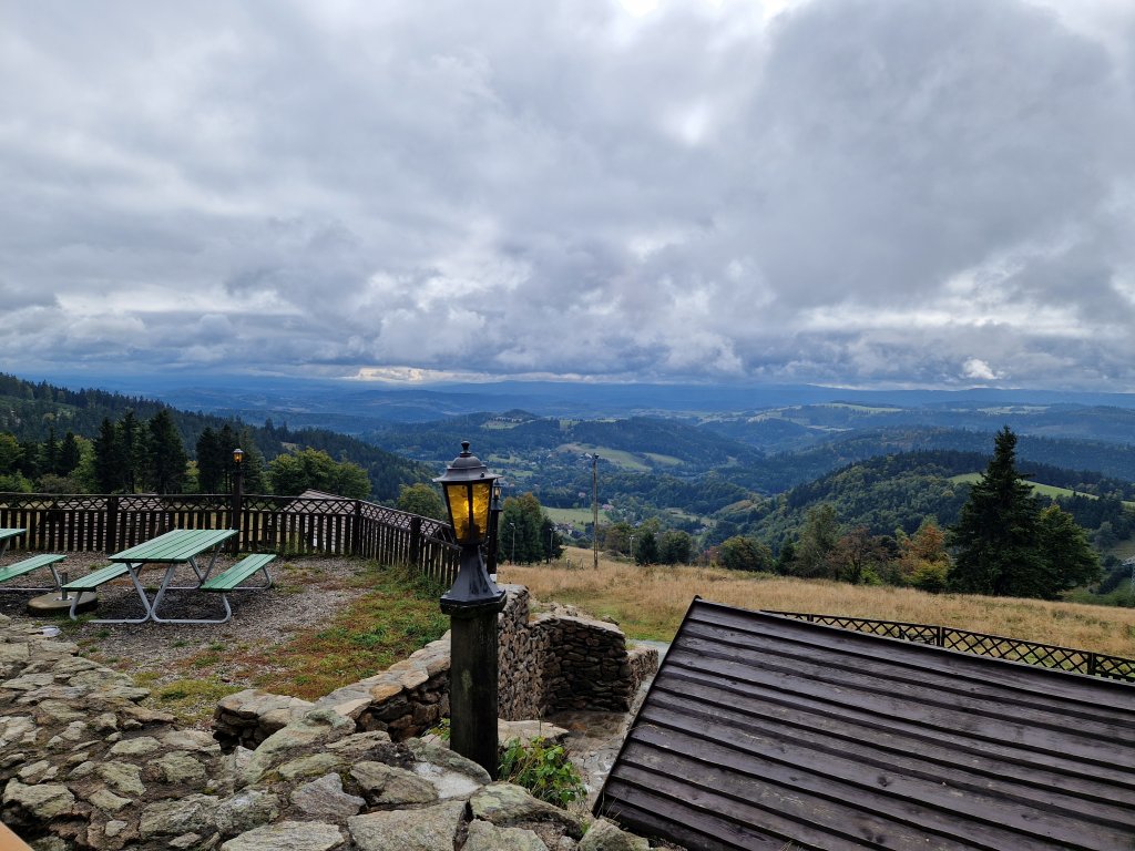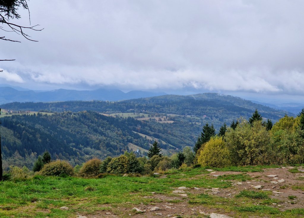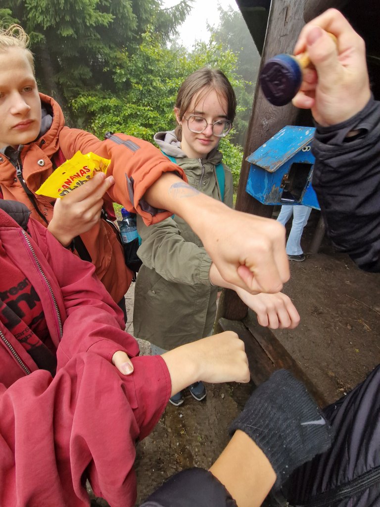 Pomimo typowo jesiennej aury, dobry humor nas nie opuszczał. W drodze powrotnej, u podnóża góry, zatrzymaliśmy się w schronisku „Orzeł”, gdzie ogrzaliśmy się przy gorącej herbacie. Mieliśmy szczęście – pojawiały się tzw. „okna pogodowe”, dzięki którym mogliśmy podziwiać malownicze panoramy roztaczające się wokół.
