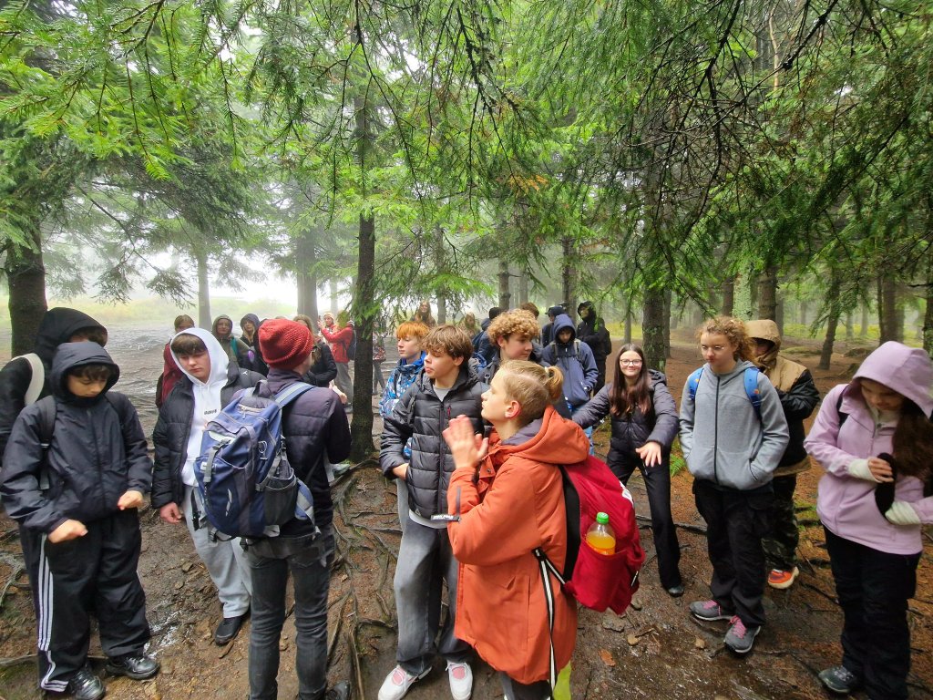 Dnia 7 października 2025 r. uczniowie klas VIII c i VIII d udali się na wycieczkę do Rzeczki, gdzie zdobyli najwyższy szczyt Gór Sowich – Wielką Sowę (1015 m n.p.m.).