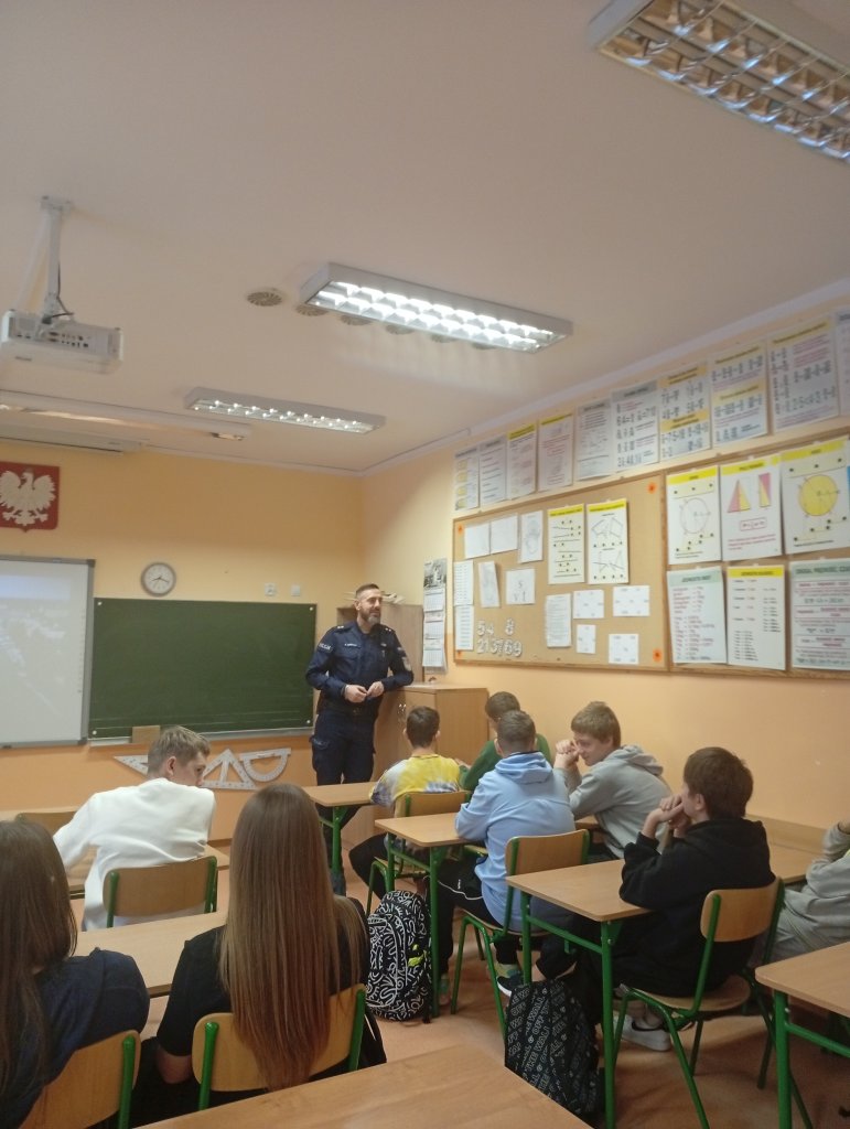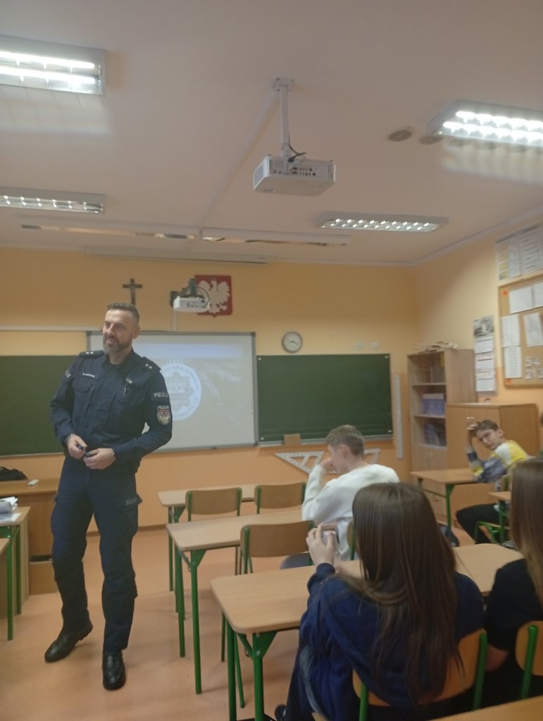 Niecodzienną lekcję, poświęcona zachowaniu zasad bezpieczeństwa w Internecie, poprowadził dla naszej młodzieży z klasy ósmej - pan podkom. Przemysław Juszczak - Koordynator ds. Nieletnich i Patologii z Wydziału Prewencji i Patrolowego Komendy Miejskiej Policji we Wrocławiu.