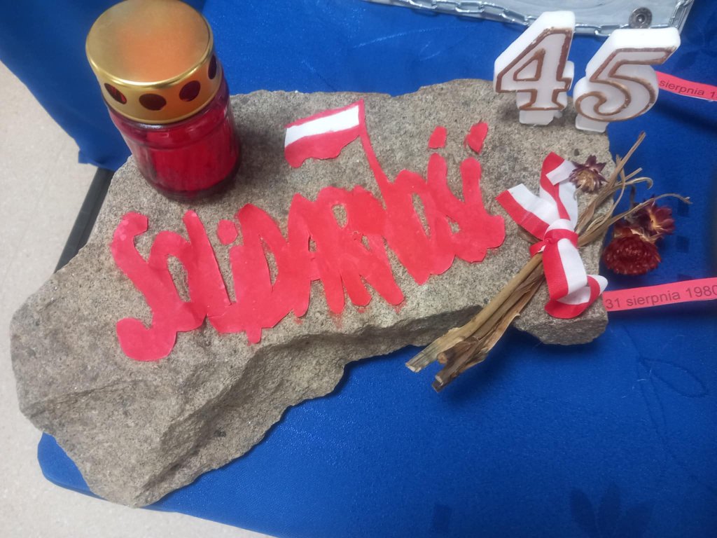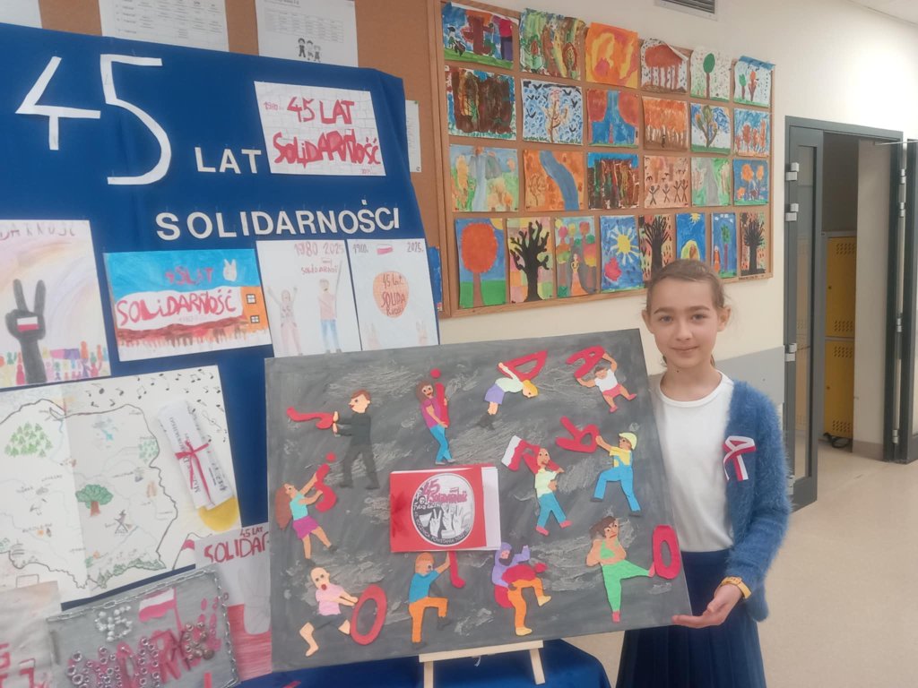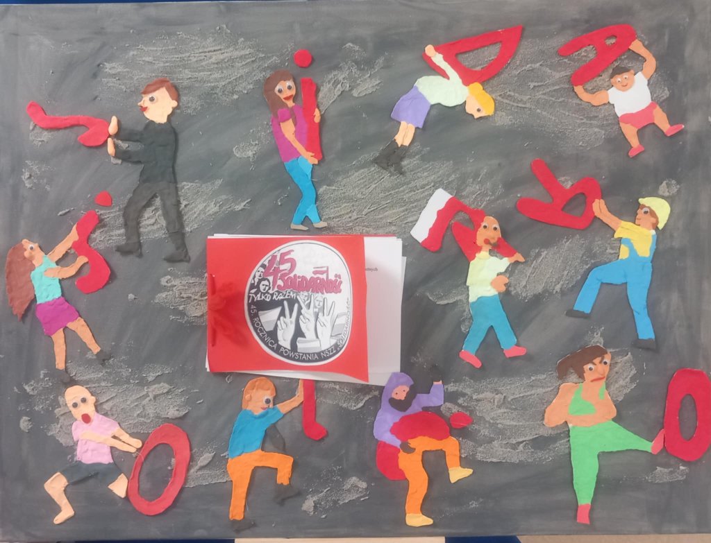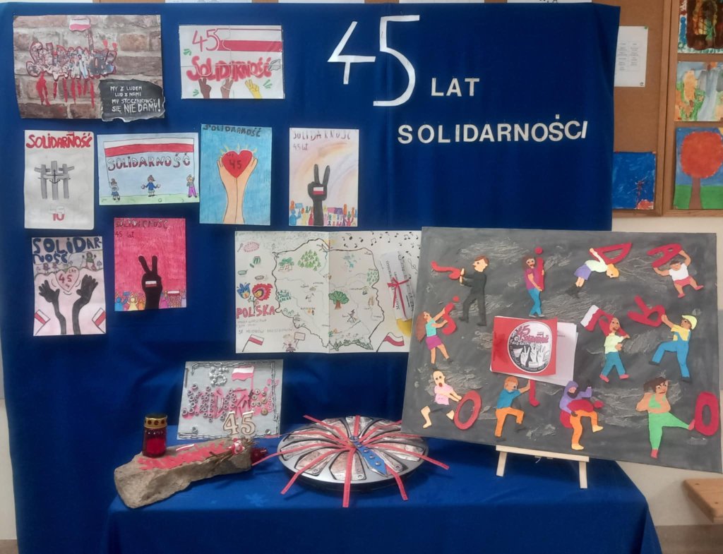 Prace klasy 3b na konkurs "Mój dom, moje miasto, moja Ojczyzna". W tym roku konkurs wojewódzki opatrzony był hasłem 45 lat Solidarności. Na warsztatach rękodzielniczych powstały piękne prace.