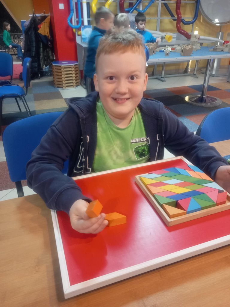 Dnia 28.11.2025r. klasa 3b razem z 2a uczestniczyła w wycieczce do Wałbrzycha w ramach projektu Poznaj Dolny Śląsk. Byliśmy na warsztatach matematycznych w ExploraPark. Na koniec uczniowie mieli okazję podoświadczać praktycznej matematyki. Mogli poukładać logiczne łamigłówki, zgłębić zjawisko złudzeń optycznych, pokonać drogę dźwięku, zbudować most wiszący i wiele innych matematycznych atrakcji. To był bardzo emocjonujący dzień.