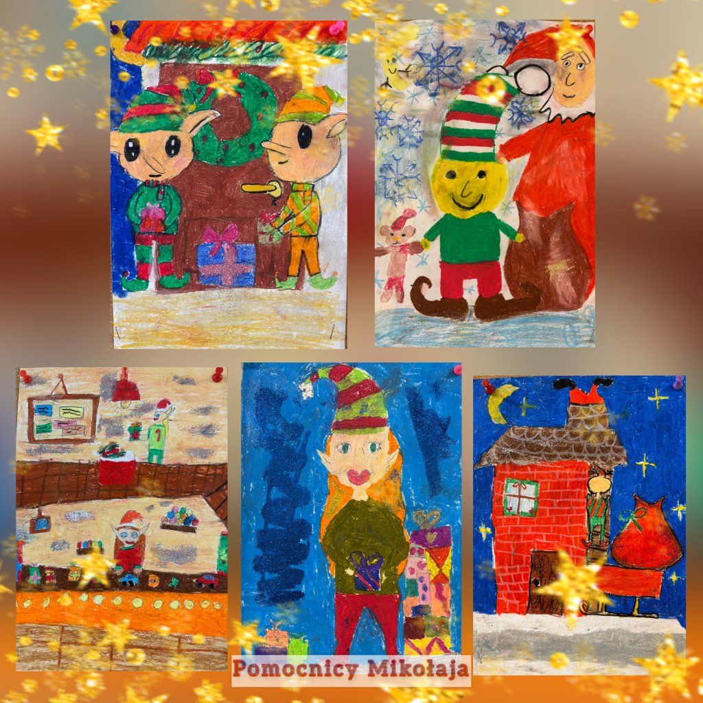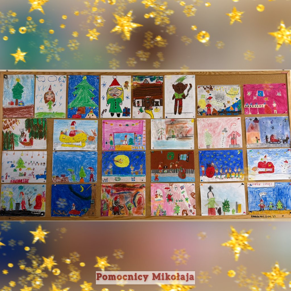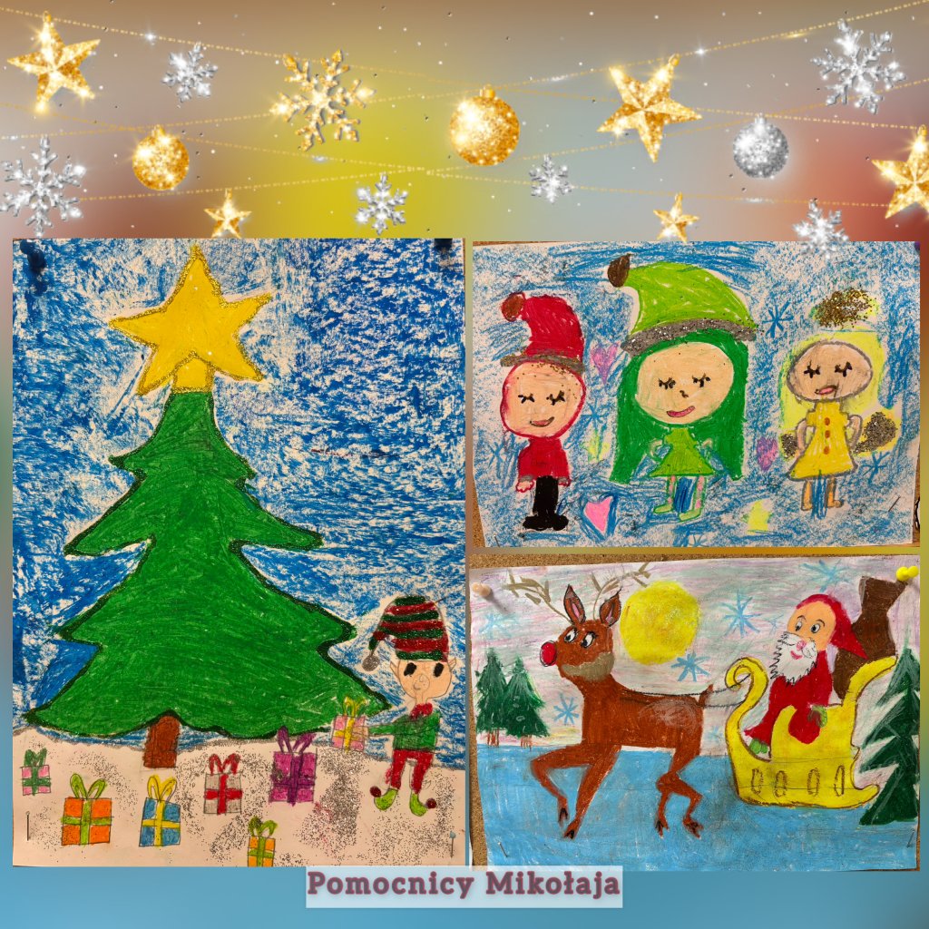 Pod koniec listopada dzieci z klas 1-3 uczęszczające do świetlicy szkolnej miały okazję rozwijać swoje umiejętności plastyczne i kreatywność w konkursie "Pomocnicy Mikołaja". W trakcie zajęć świetlicowych powstały piękne prace wykonane z wykorzystaniem pasteli. Wystawę prac można oglądać do końca roku w holu budynku klas 1-3.