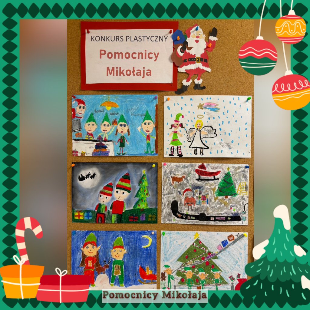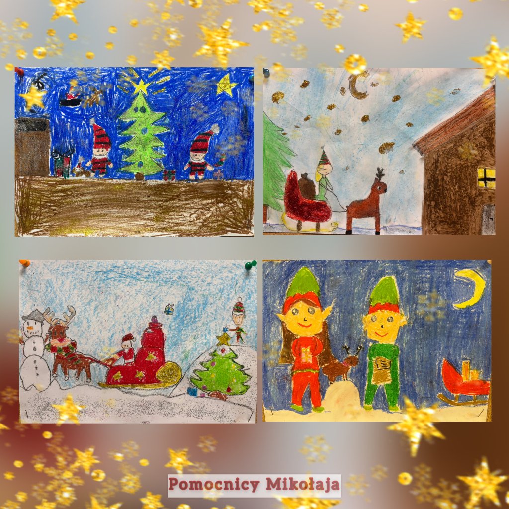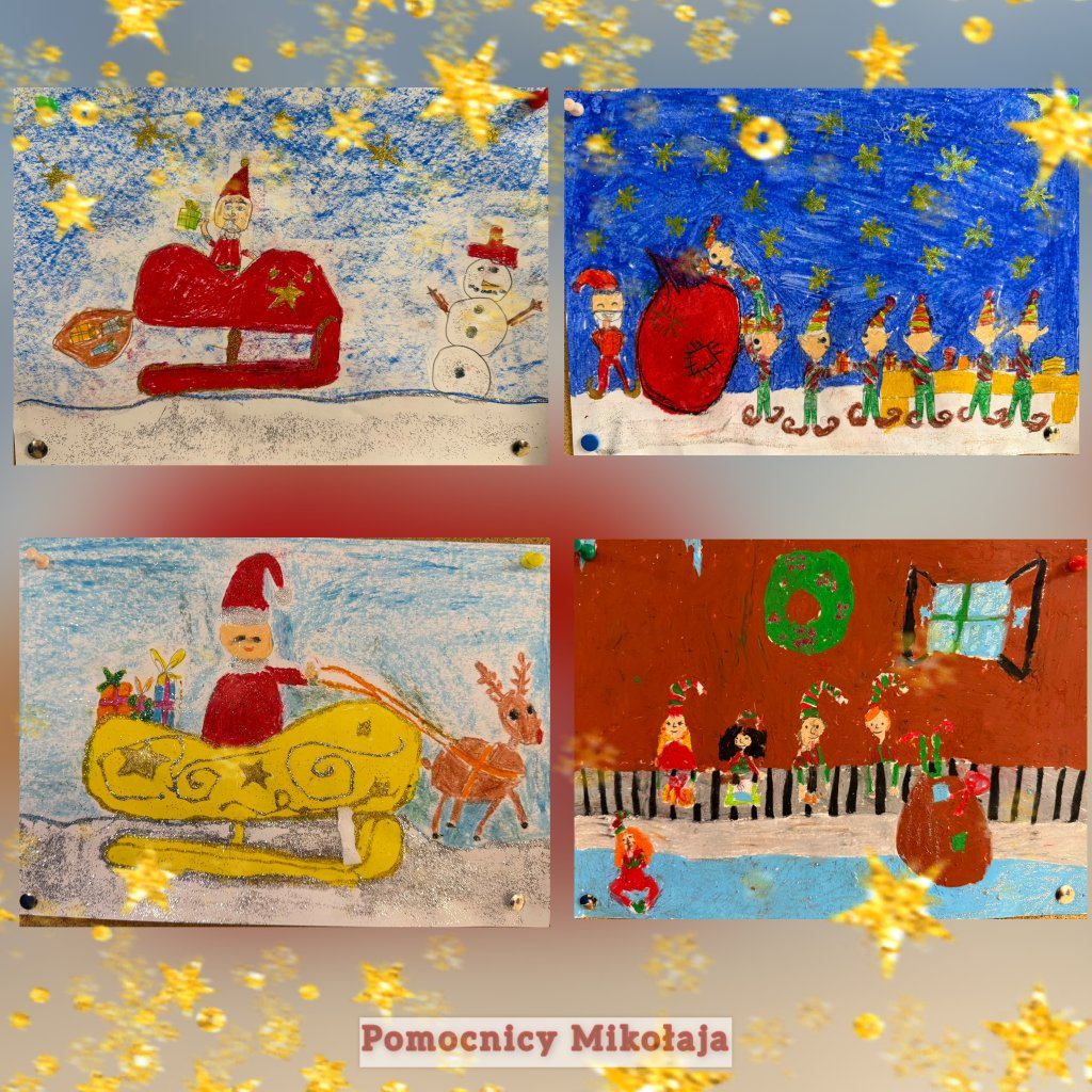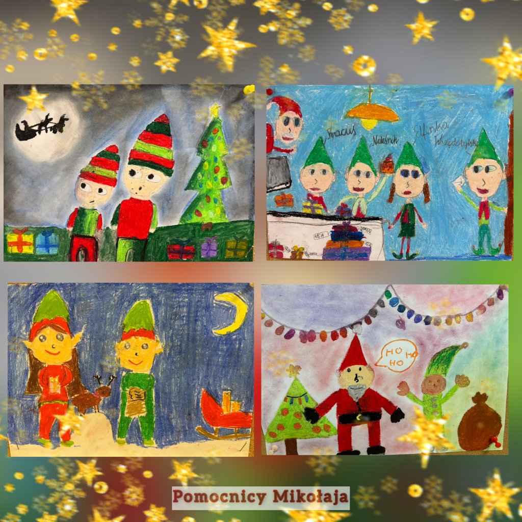Pod koniec listopada dzieci z klas 1-3 uczęszczające do świetlicy szkolnej miały okazję rozwijać swoje umiejętności plastyczne i kreatywność w konkursie "Pomocnicy Mikołaja". W trakcie zajęć świetlicowych powstały piękne prace wykonane z wykorzystaniem pasteli. Wystawę prac można oglądać do końca roku w holu budynku klas 1-3.