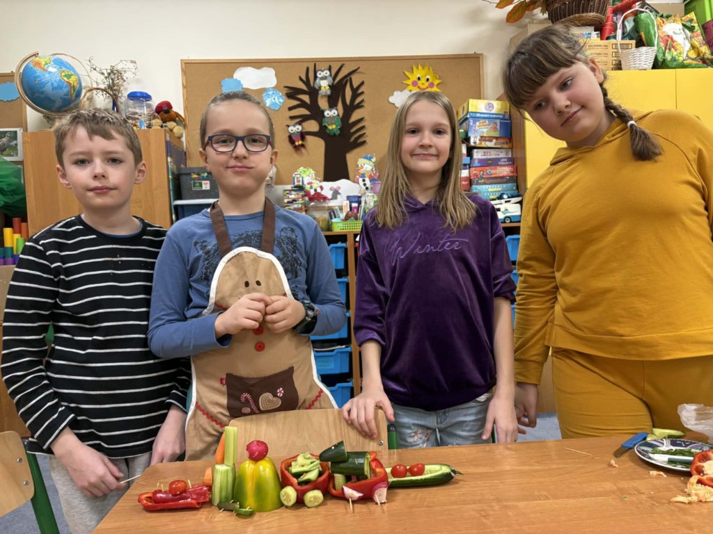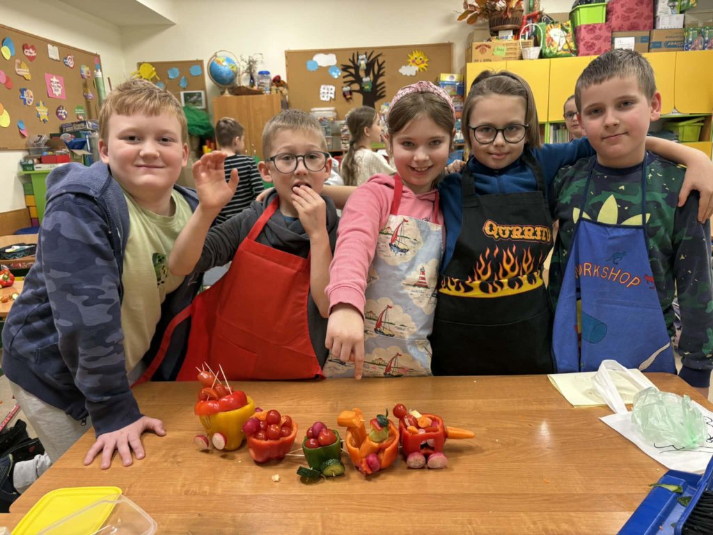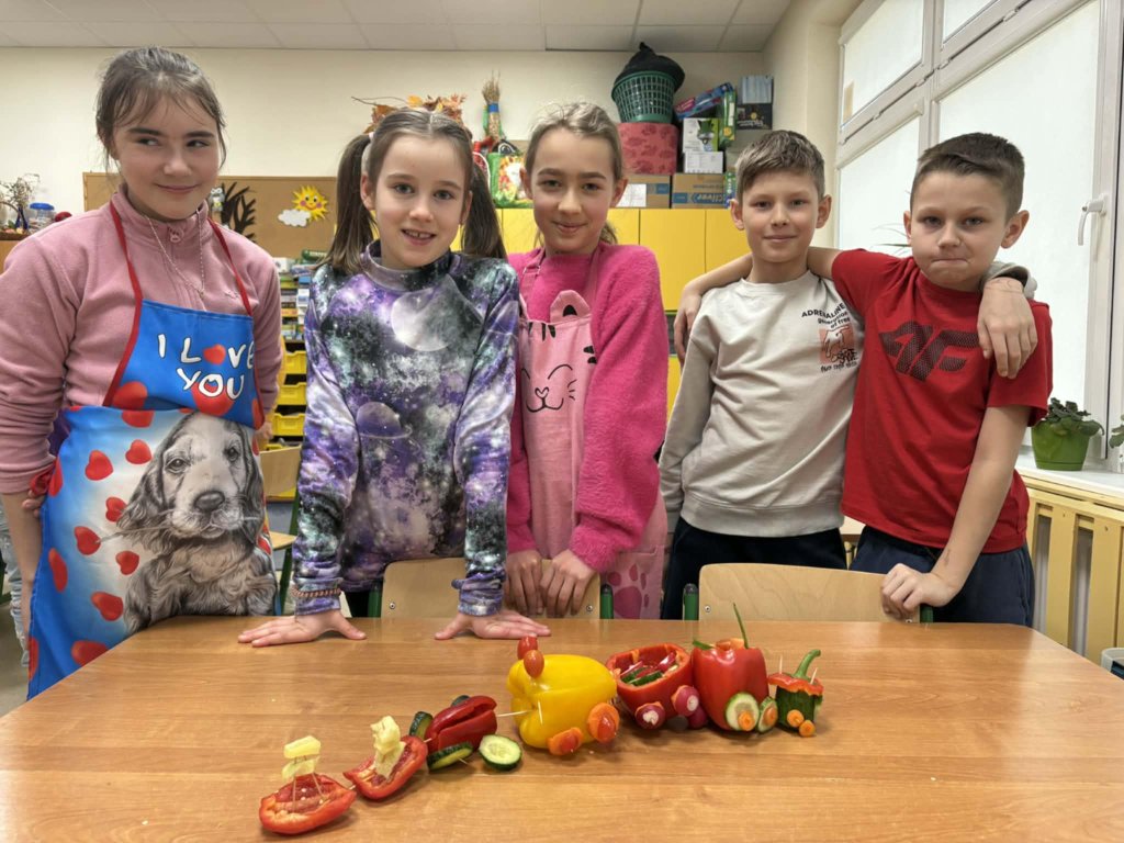 Drukuj Powrót do poprzedniej strony 27.01 - Warsztaty kulinarne w 3b 27.01.2026 1:18 Treść Dnia 27.01 w klasie 3b odbyły się kolejne warsztaty kulinarne. Tym razem dzieci pojechały paprykowym pociągiem do stacji "zdrowie".