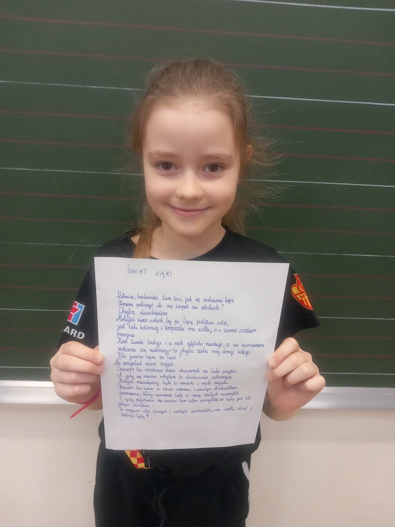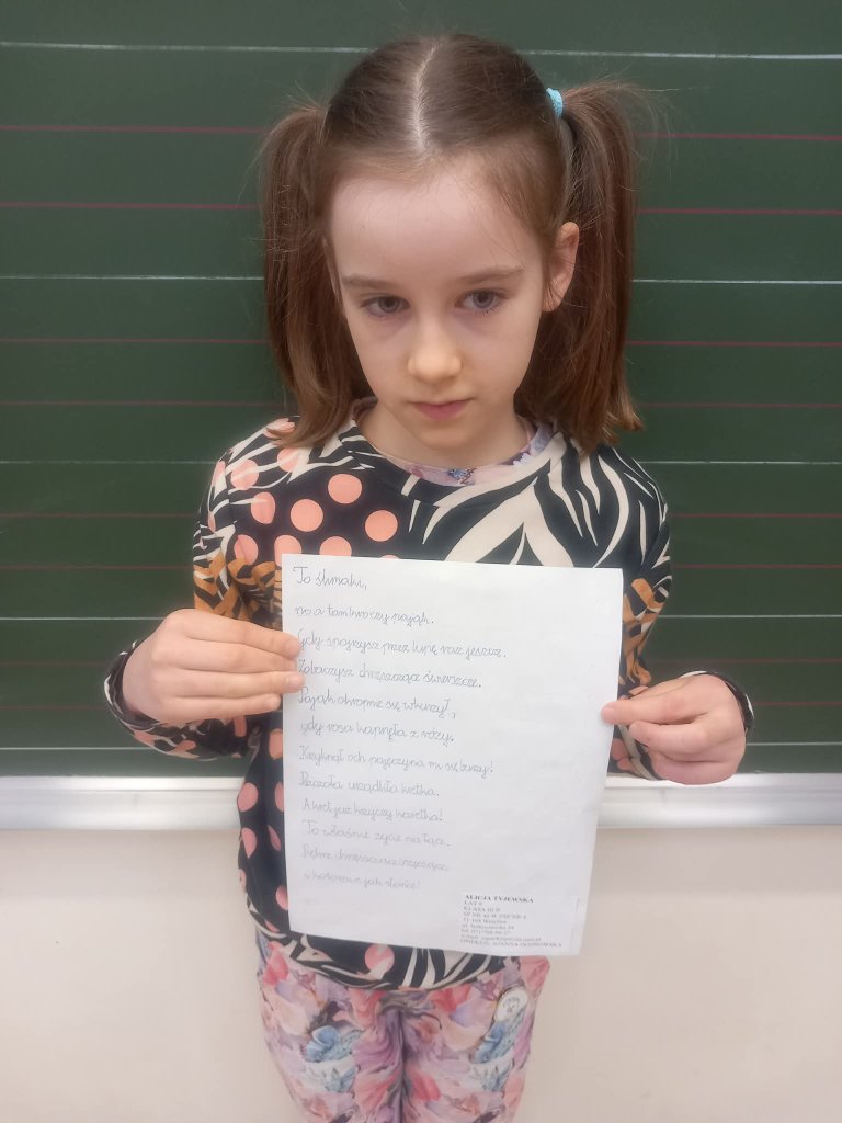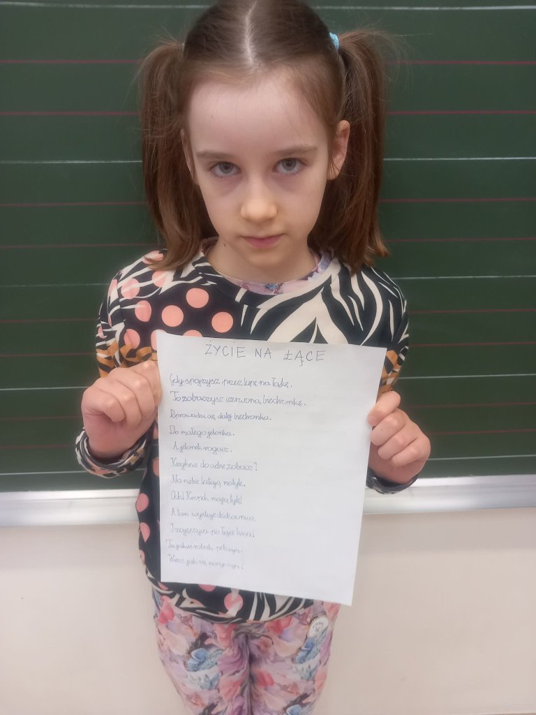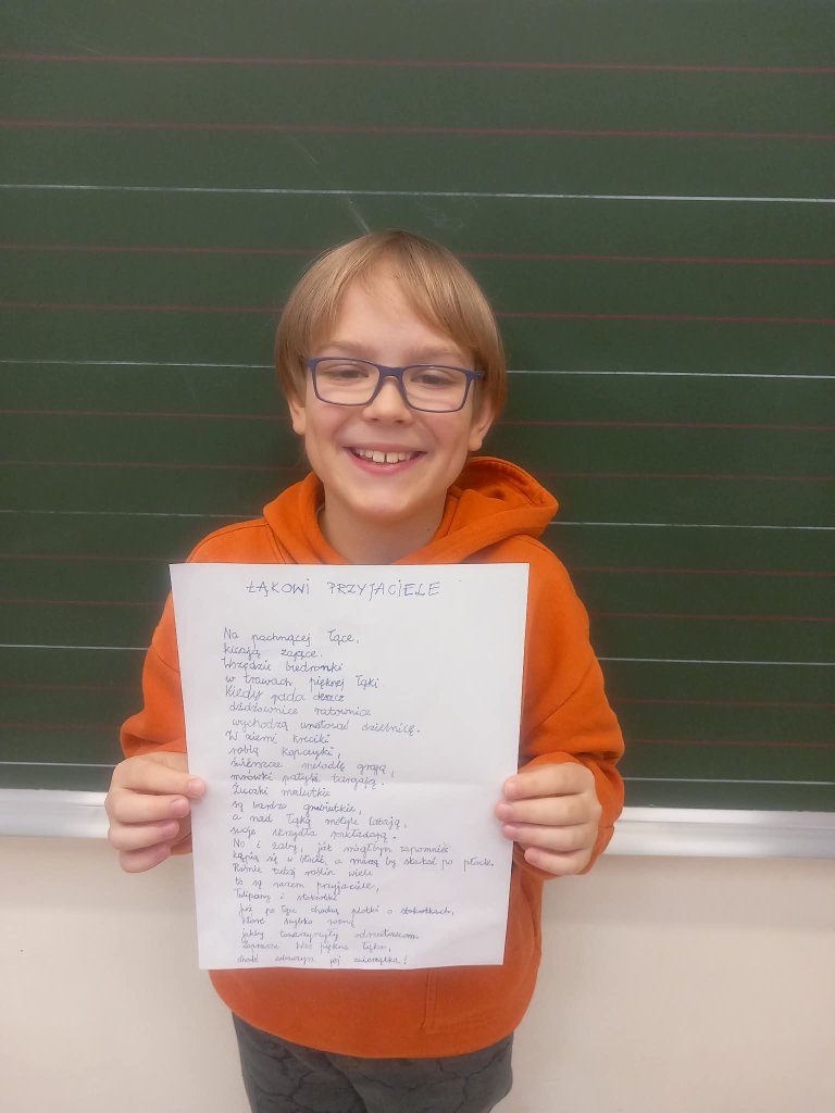 Drukuj Powrót do poprzedniej strony 3b - Wiersze na konkurs "Łąka po lupą" 08.03.2026 1:22 Treść Uczniowie z klasy 3b stworzyli piękne wiersze na ogólnopolski konkurs literacki "Łąka po lupą".