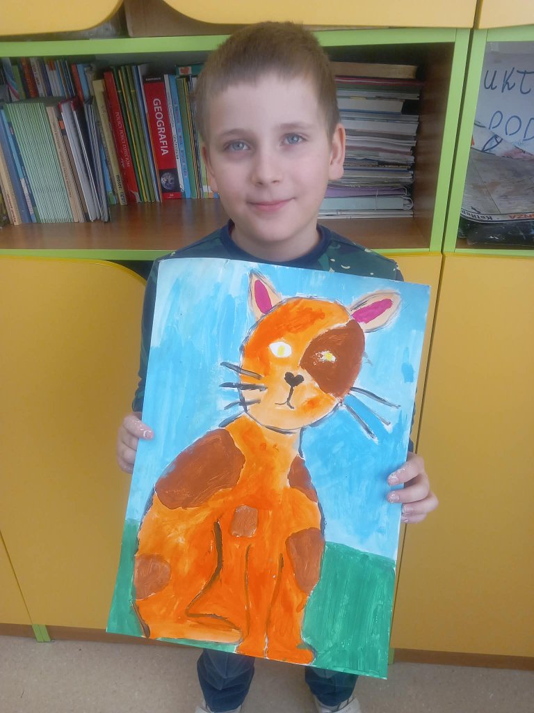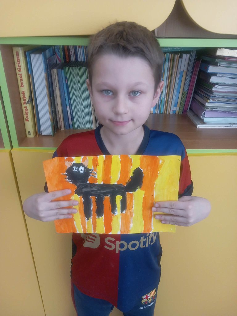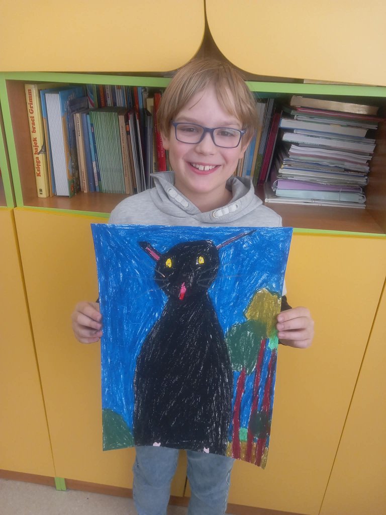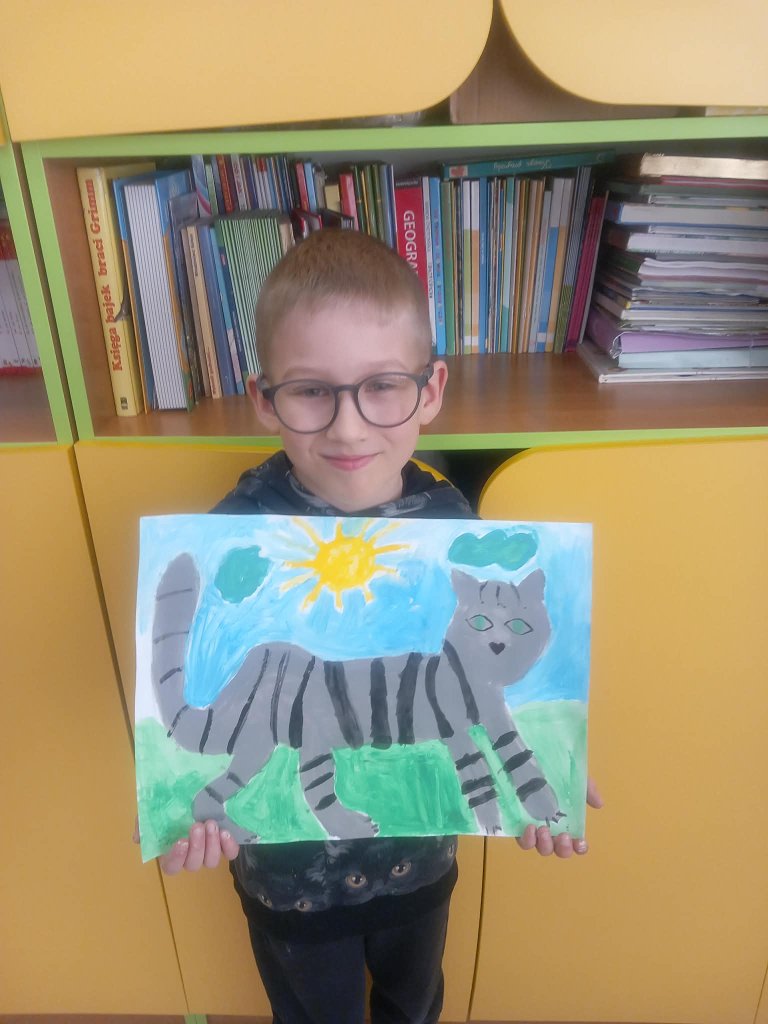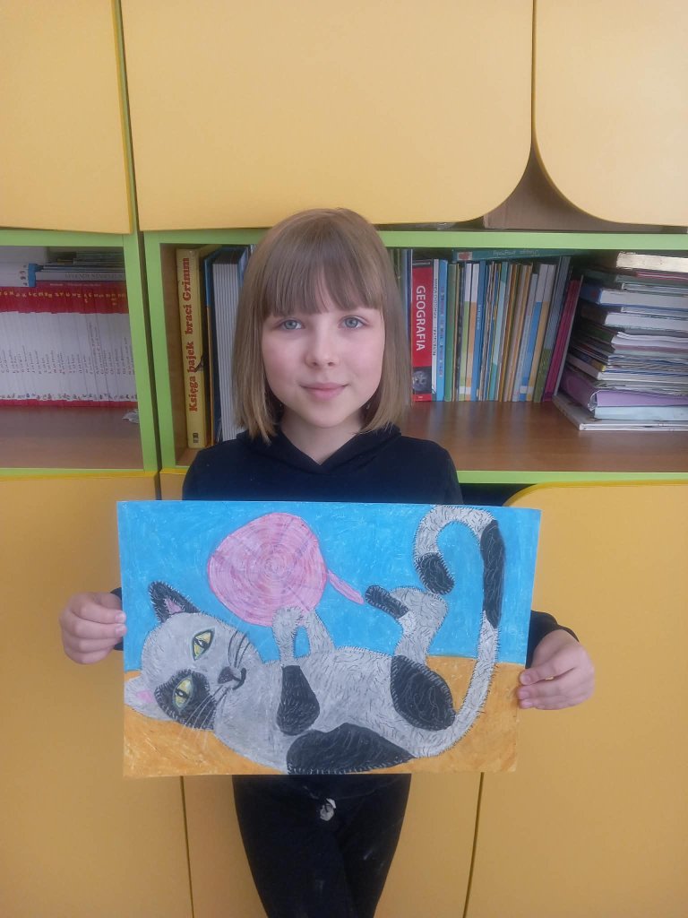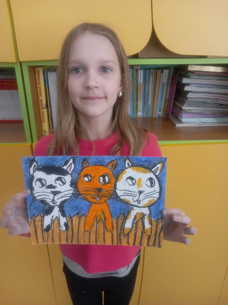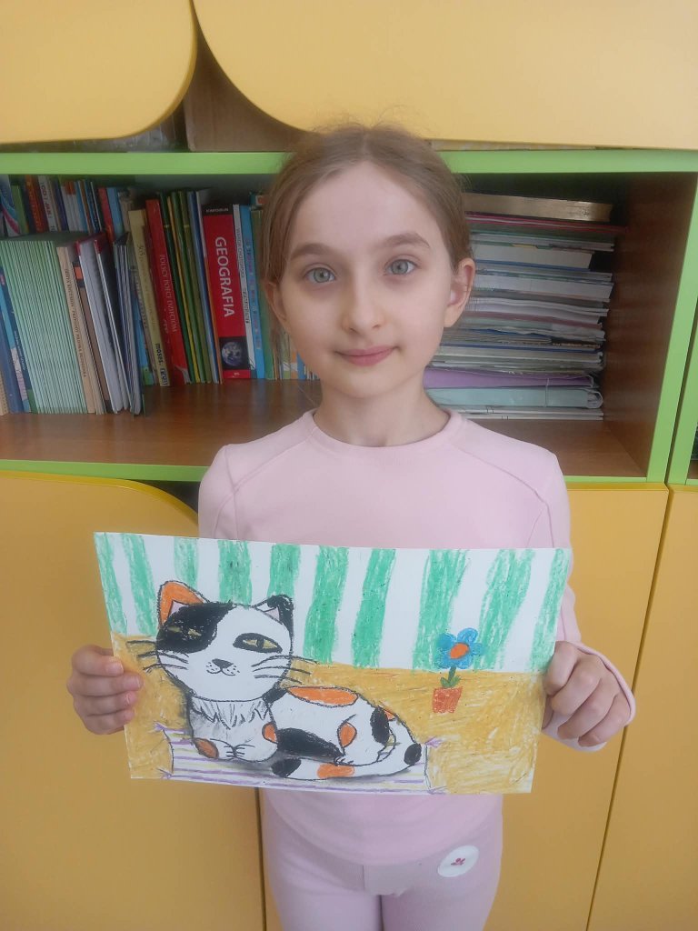 Drukuj Powrót do poprzedniej strony Prace uczniów 3b na międzyszkolny konkurs plastyczny "Kocie niebajki" 08.03.2026 1:25 Treść Prace uczniów 3b na międzyszkolny konkurs plastyczny "Kocie niebajki".