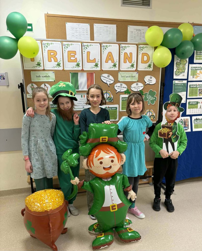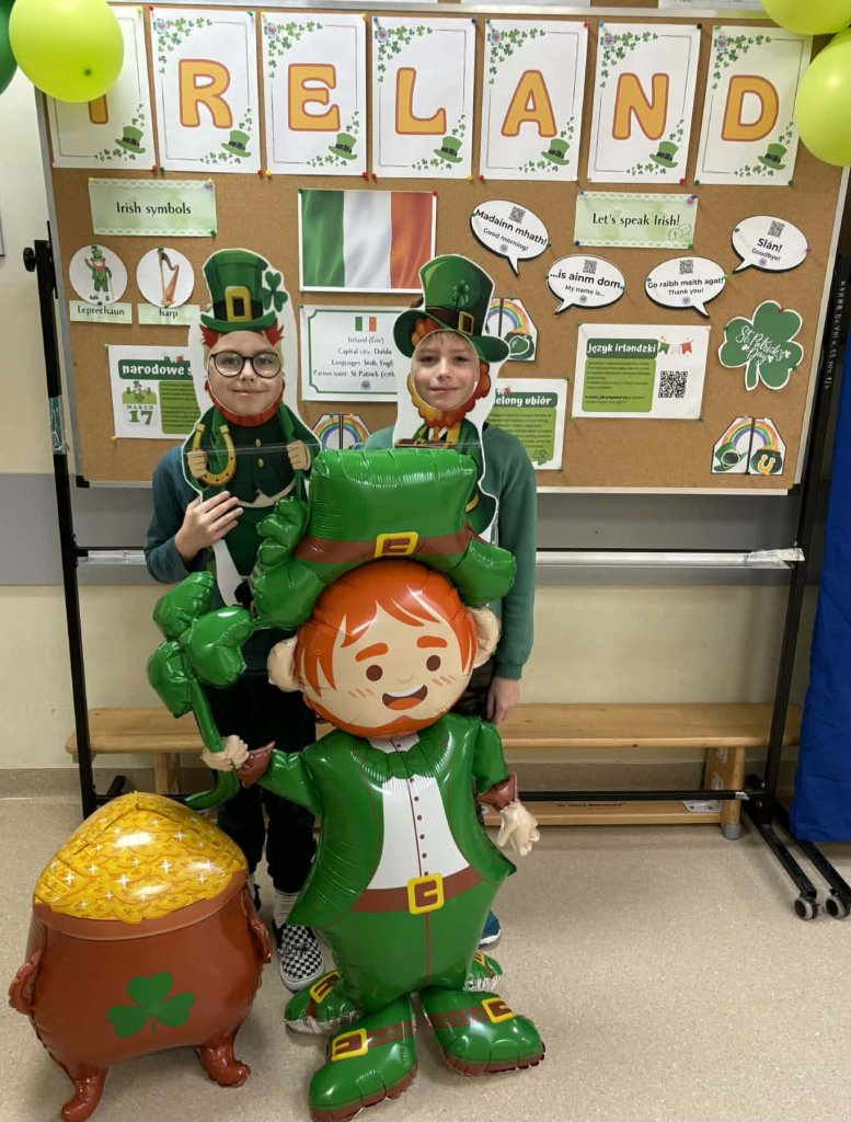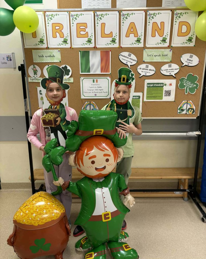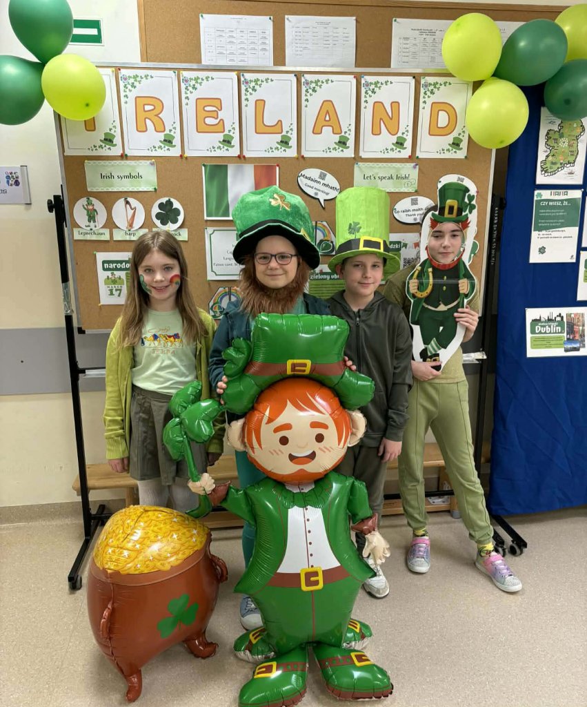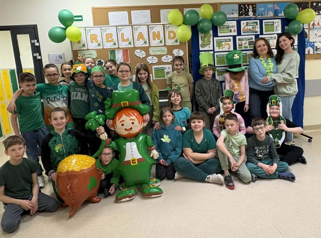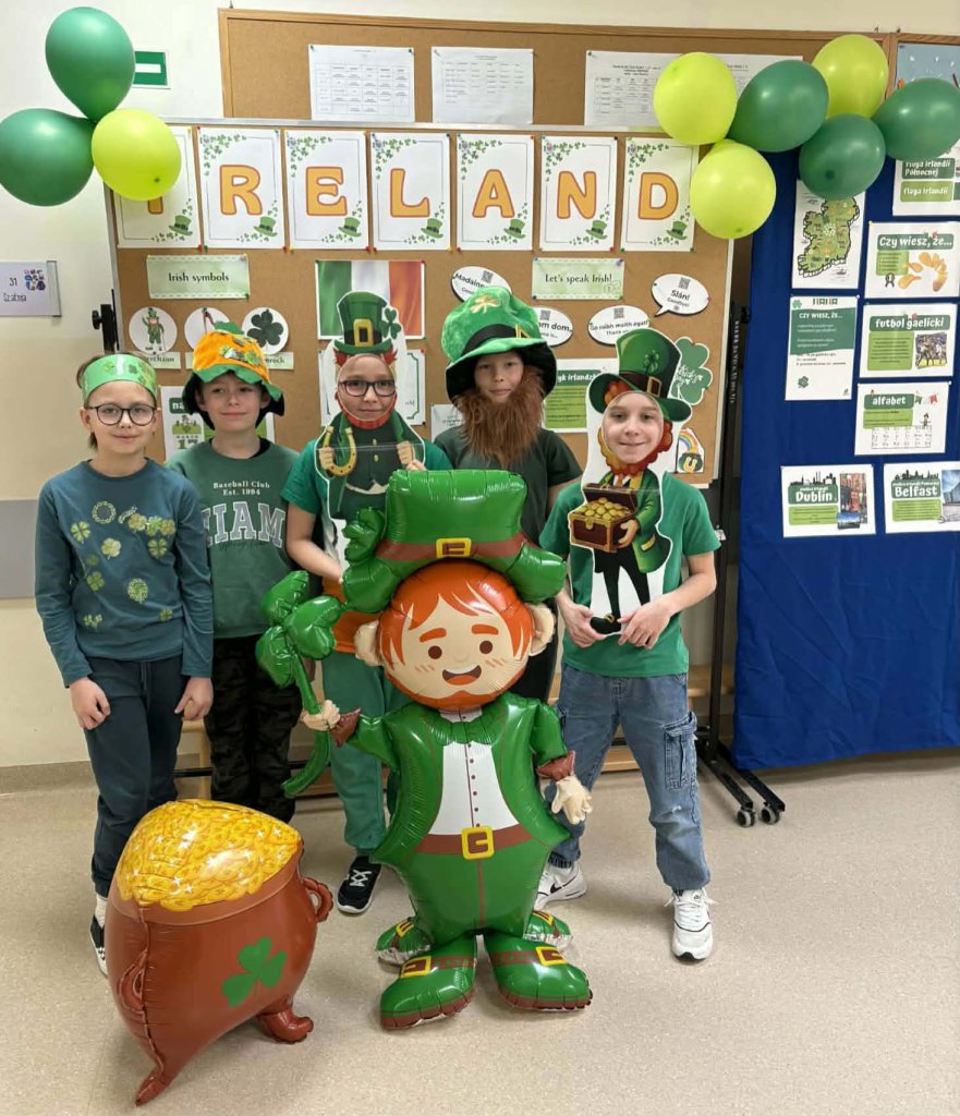 Drukuj Powrót do poprzedniej strony 3b świętuje Dzień św. Patryka 17.03.2026 1:28 Treść Dnia 17.03 świętowaliśmy Dzień św. Patryka. Klasa 3b przebrała się w barwy narodowe Irlandii.